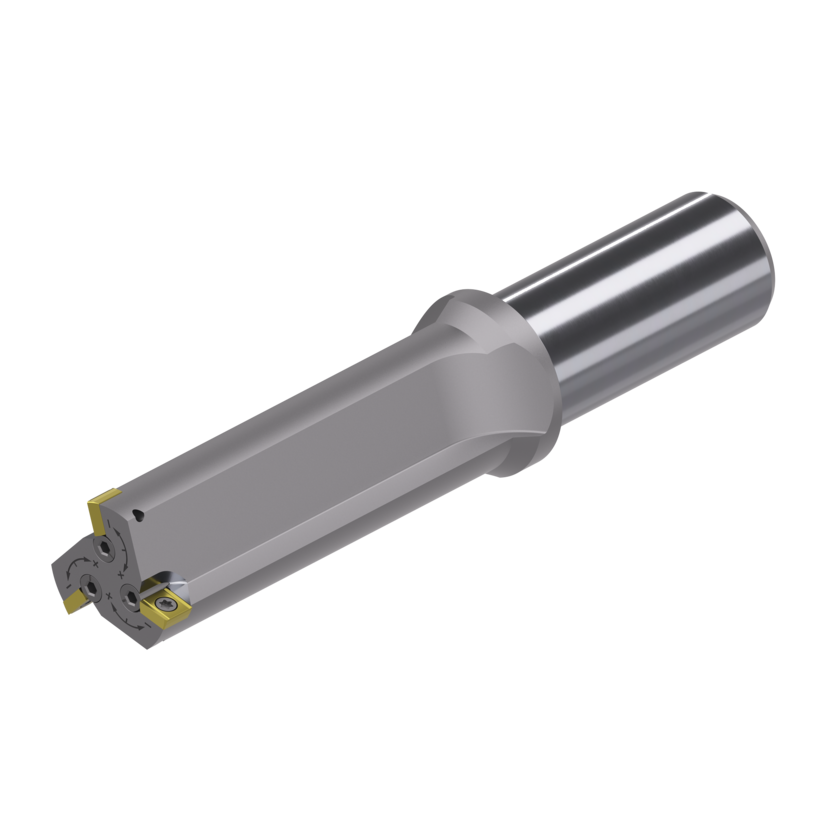 - Hohe Zerspanungsleistung durch 3 Schneiden ab d=26
